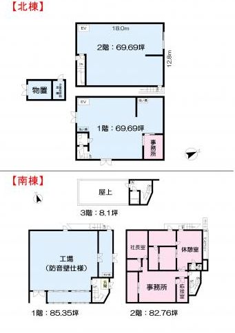 面積合計319坪の工場付き事務所(旧印刷工場)です。