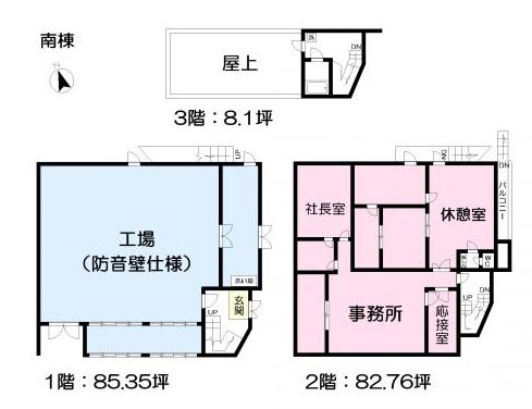 1階:85.35坪/2階:82.76坪/3階:8.1坪